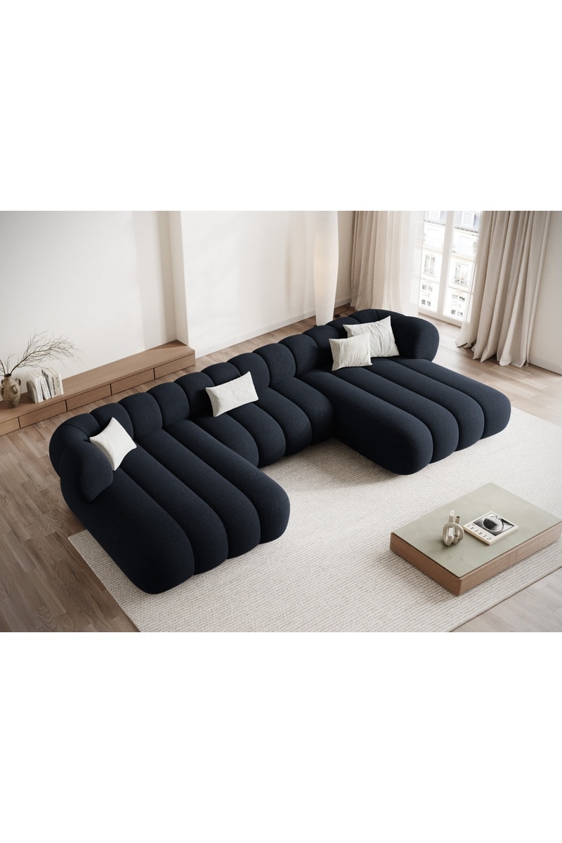 Canapé panoramique Koge - Bleu marine - 6 places - En tissu chenille