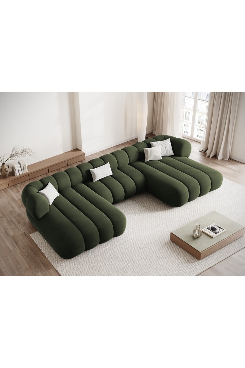 Canapé d’angle panoramique Koge - Vert - 6 places - En tissu velours