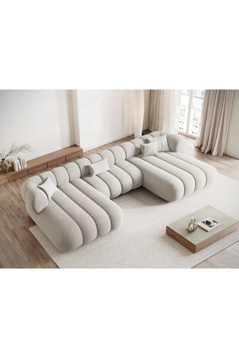 Canapé d’angle panoramique Koge - Beige clair - 6 places - En tissu chenille