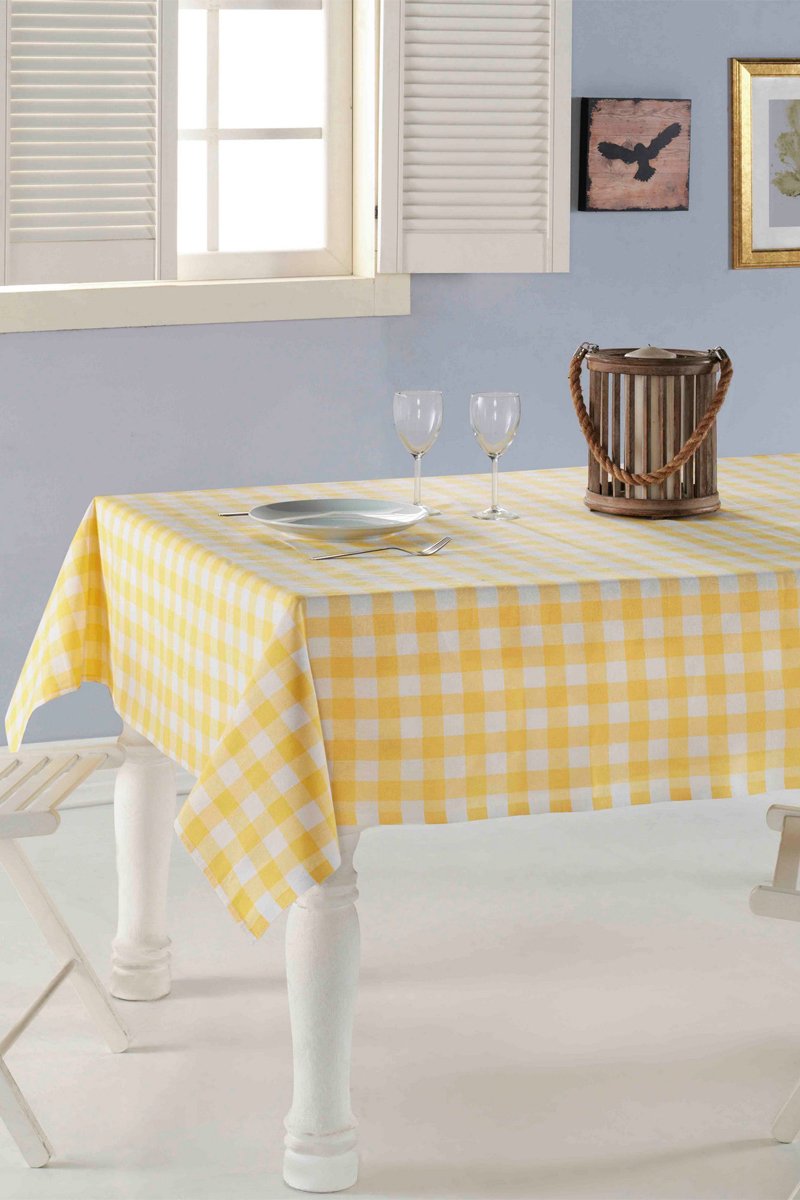 Nappe rectangulaire - Jaune et blanc - 160 x 220 cm
