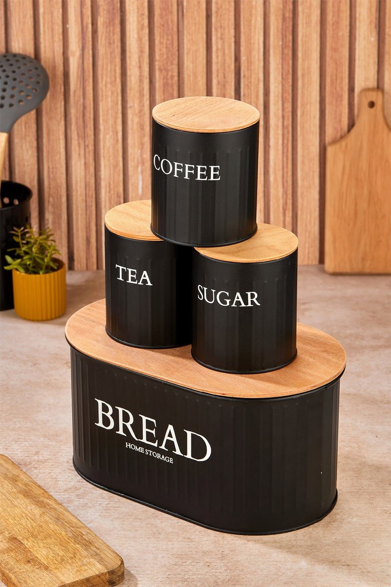 4 boîtes de conservation avec couvercles en bois
