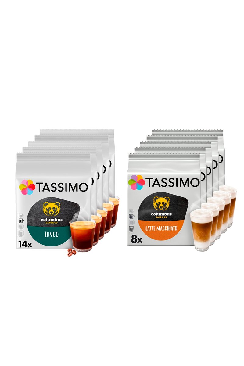 Assortiment 110 dosettes Columbus Lungo et Latte Macchiato - Compatibles Tassimo