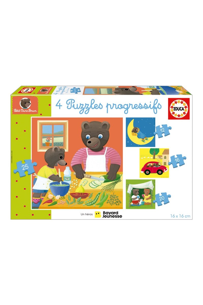 4 puzzles Progressifs Petits Ours Bruns - 12, 16, 20 et 25 pièces