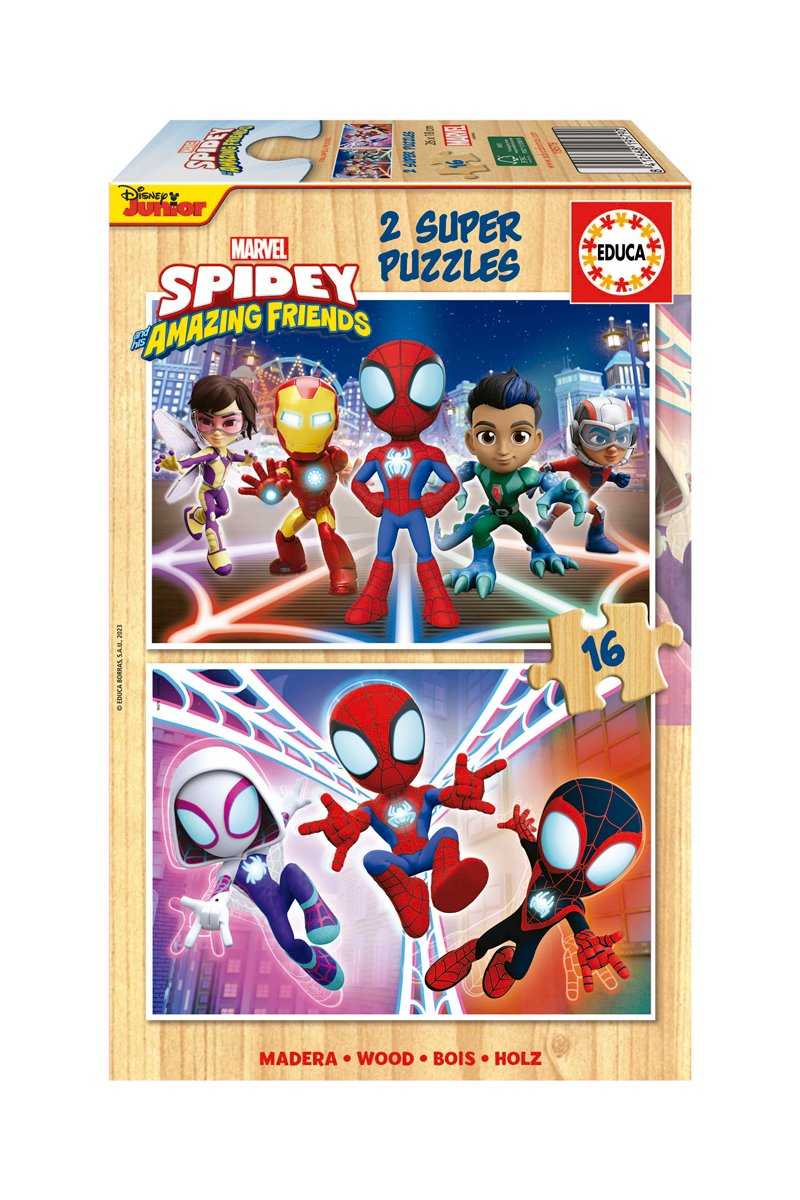 2 puzzles Spidey & his amazing friends Marvel Disney Jr en bois - 2 x 16 pièces - Dès 3 ans