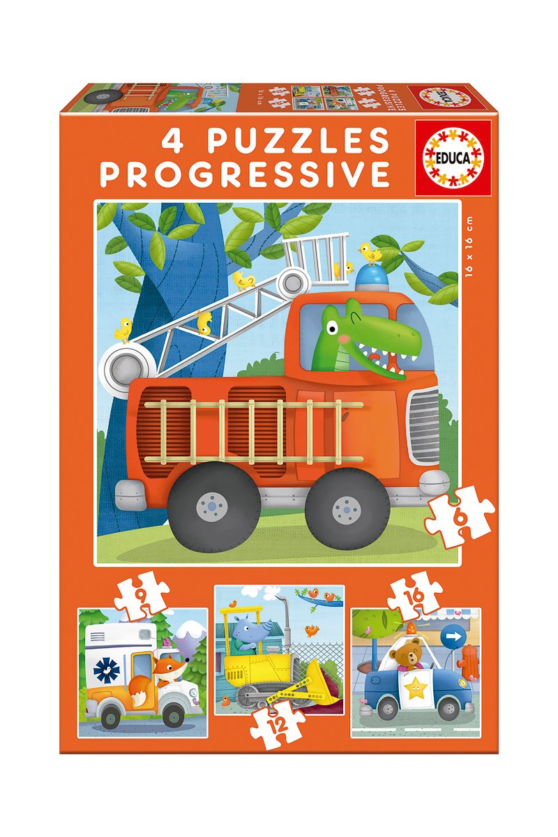 4 puzzles progressifs Les véhicules - 6/9/12/16 pièces - Dès 3 ans