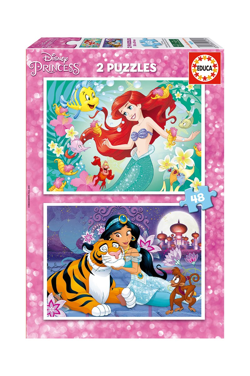 2 puzzles Ariel La Petite Sirène et Jasmine Aladdin Disney - 2 x 48 pièces - Dès 4 ans