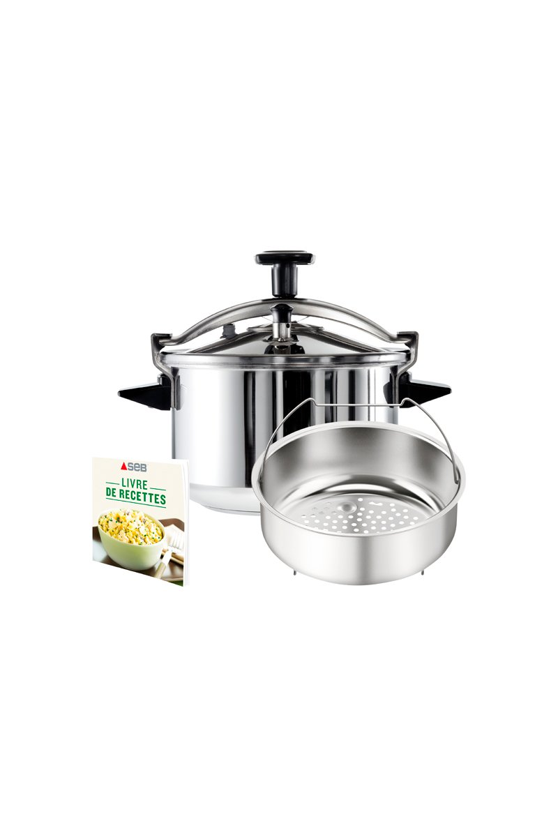 Cocotte-minute® en acier inoxydable avec couvercle.