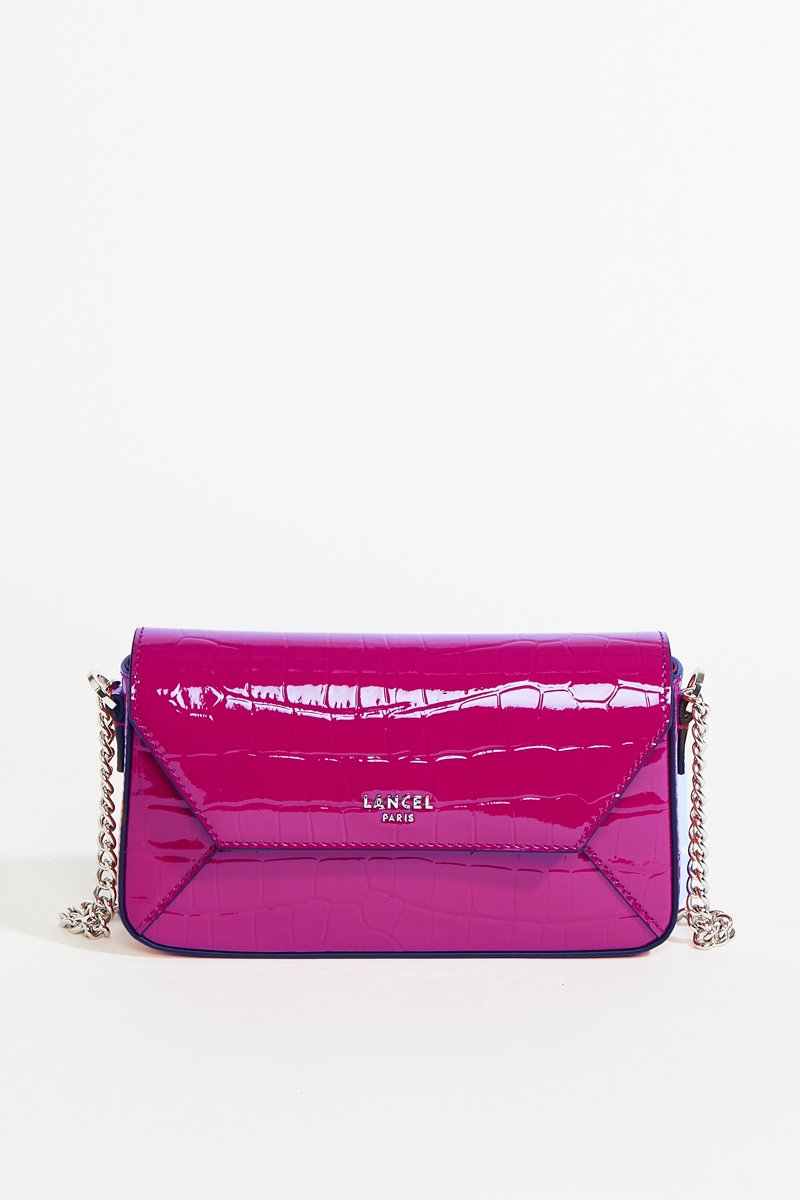 Sac bandoulière en cuir verni Lettrines Mini - Fuchsia