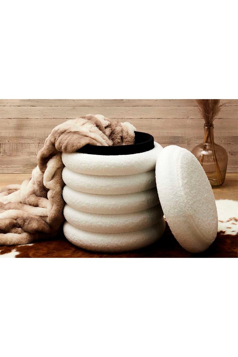 Pouf avec rangement Freya - Blanc - Revêtement bouclette