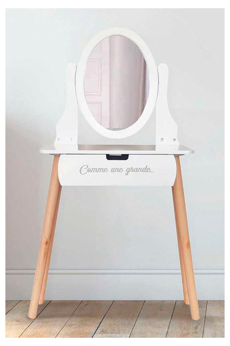 Coiffeuse Louise - Imitation bois et blanc
