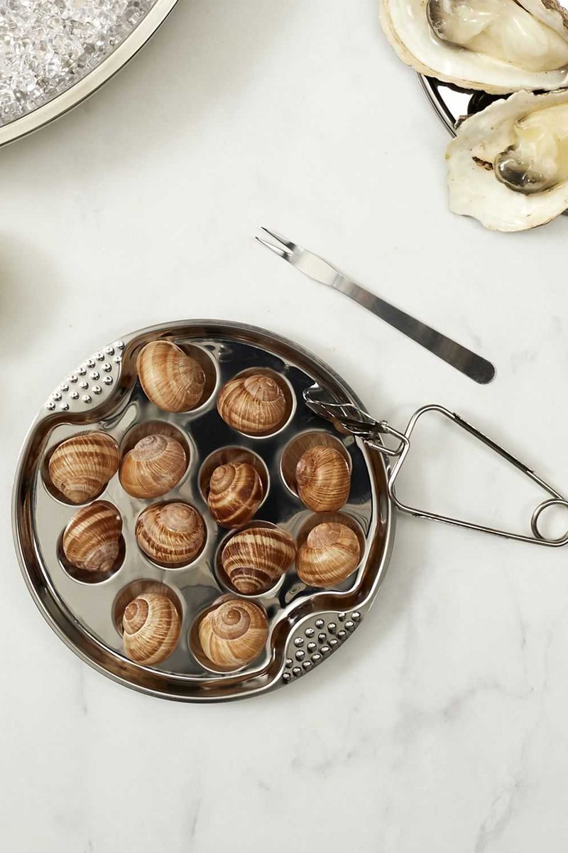 2 assiettes à escargots en acier inoxydable - 12 emplacements - 18 cm