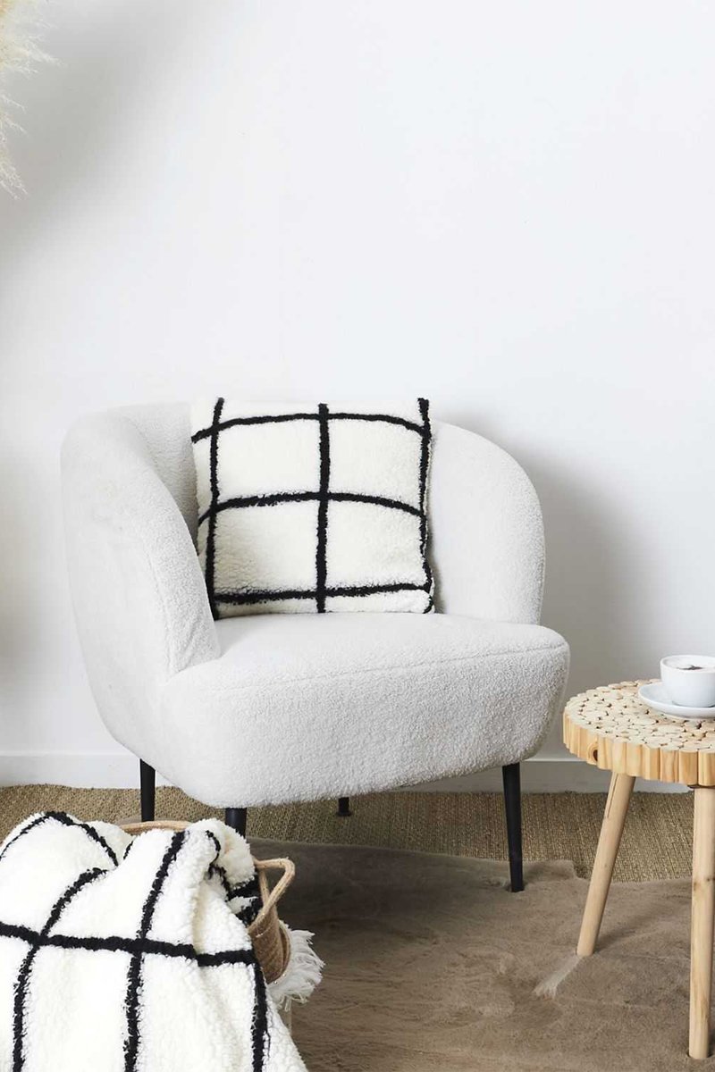 Coussin sherpa - Blanc et noir - 40 x 6 x 40 cm