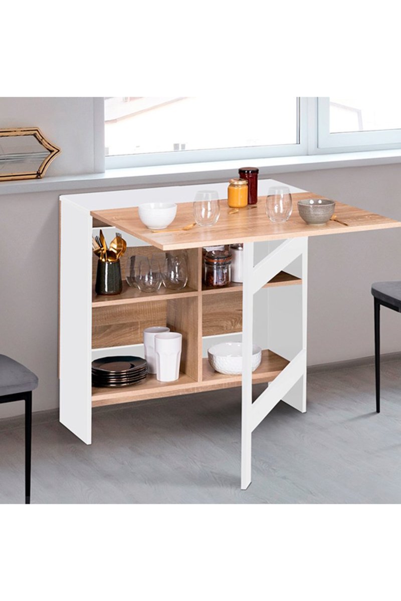 Table console pliable Edi - Imitation bois et blanc
