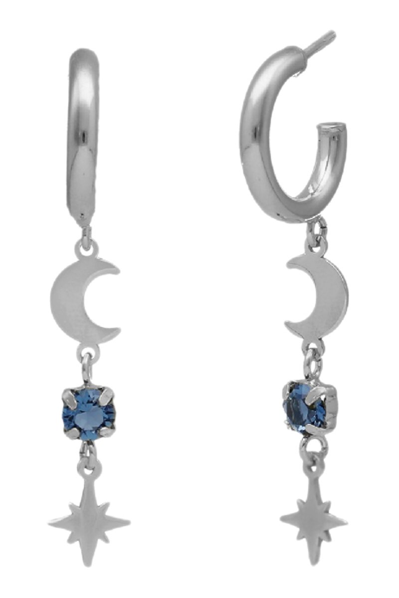 Boucles d'oreilles pendantes en argent serties d'une pierre-de-lune.