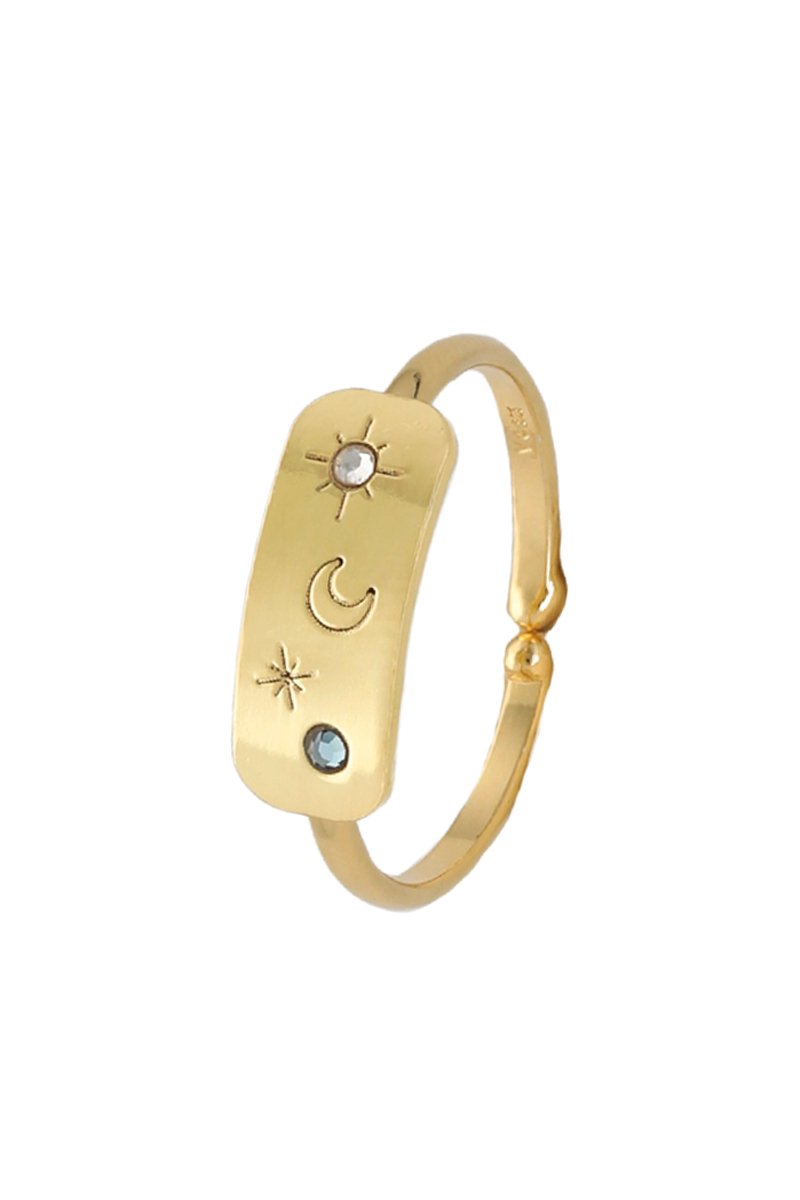 Bague - Argent plaqué or jaune et pierre-de-lune