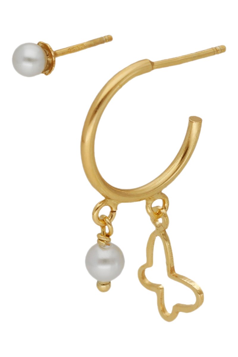 Boucles d'oreilles en argent plaqué or jaune serties d'une perle d'imitation.