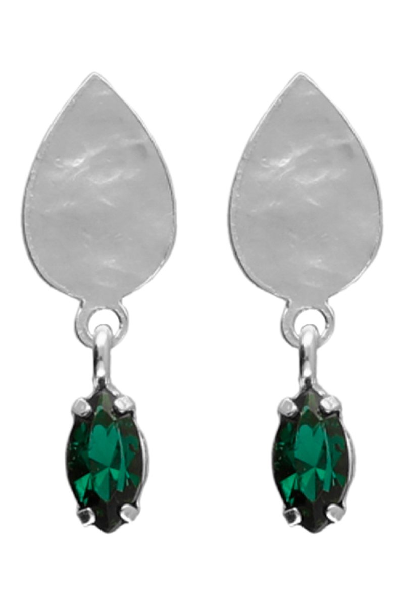 Boucles d'oreilles pendantes en argent serties d'une émeraude.