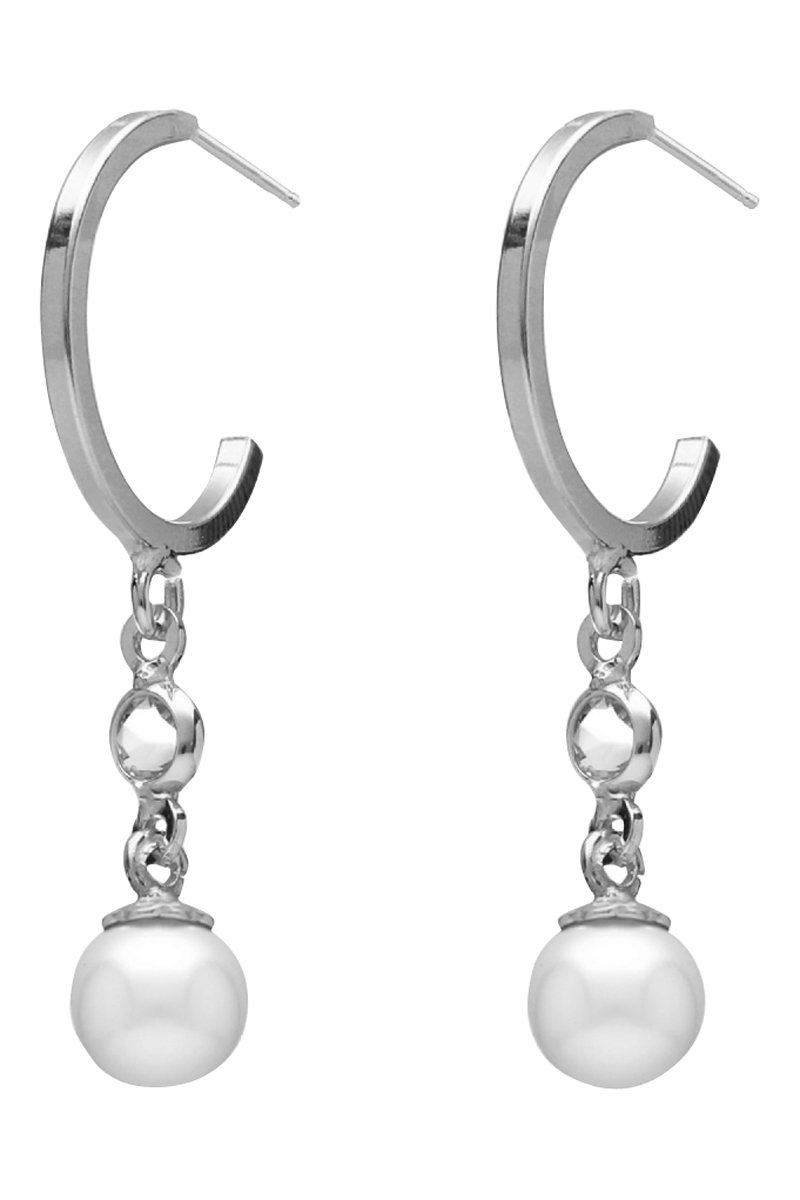 Boucles d'oreilles pendantes en argent ornées de cristaux Swarovski et d'une perle d'imitation.
