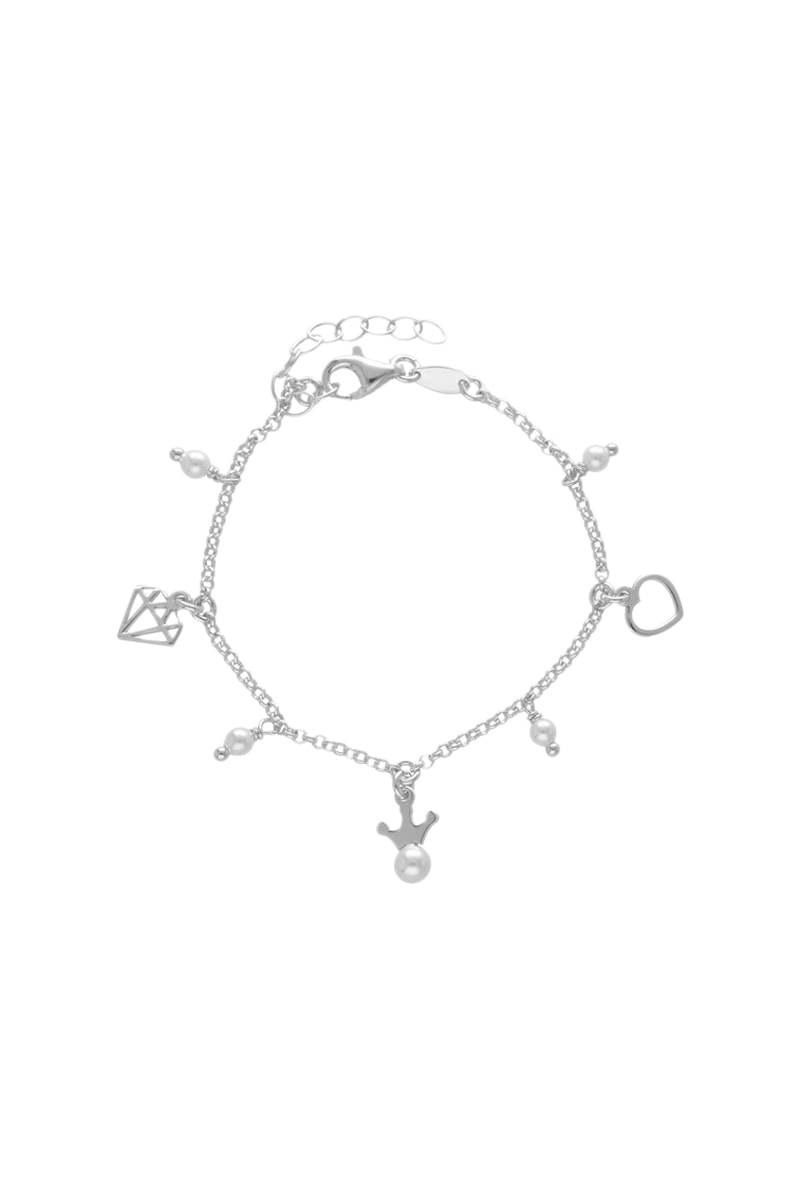 Bracelet en argent serti de perles d’imitation.