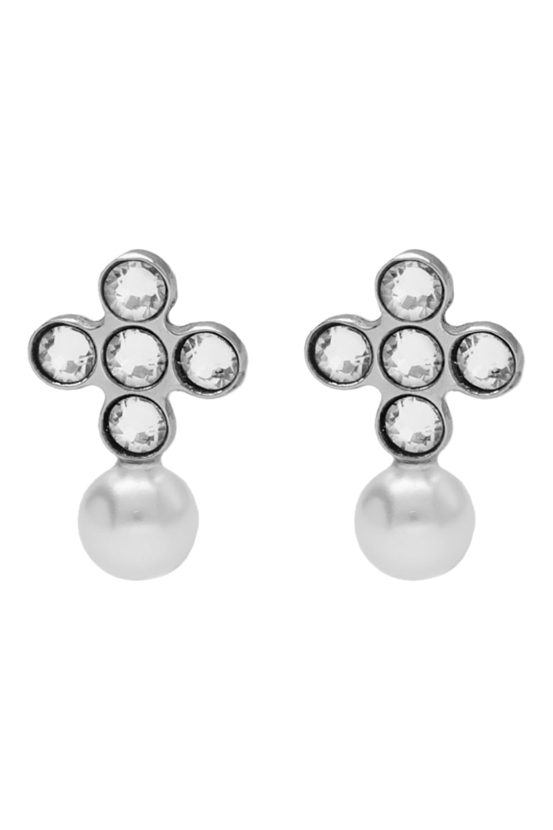 Puces en argent serties de cristaux et d'une perle d’imitation.