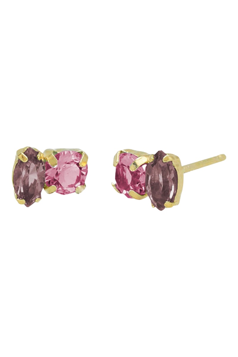 Puces en argent plaqué or jaune serties de cristaux.