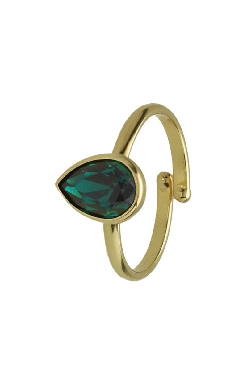 Bague réglable en argent plaqué or jaune sertie de cristaux.
