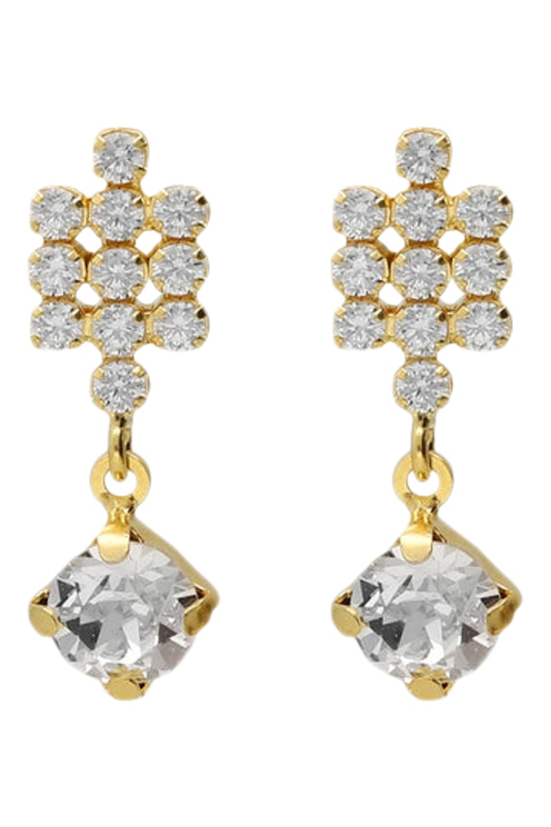 Boucles d’oreilles pendantes en argent serties de 12 cristaux.