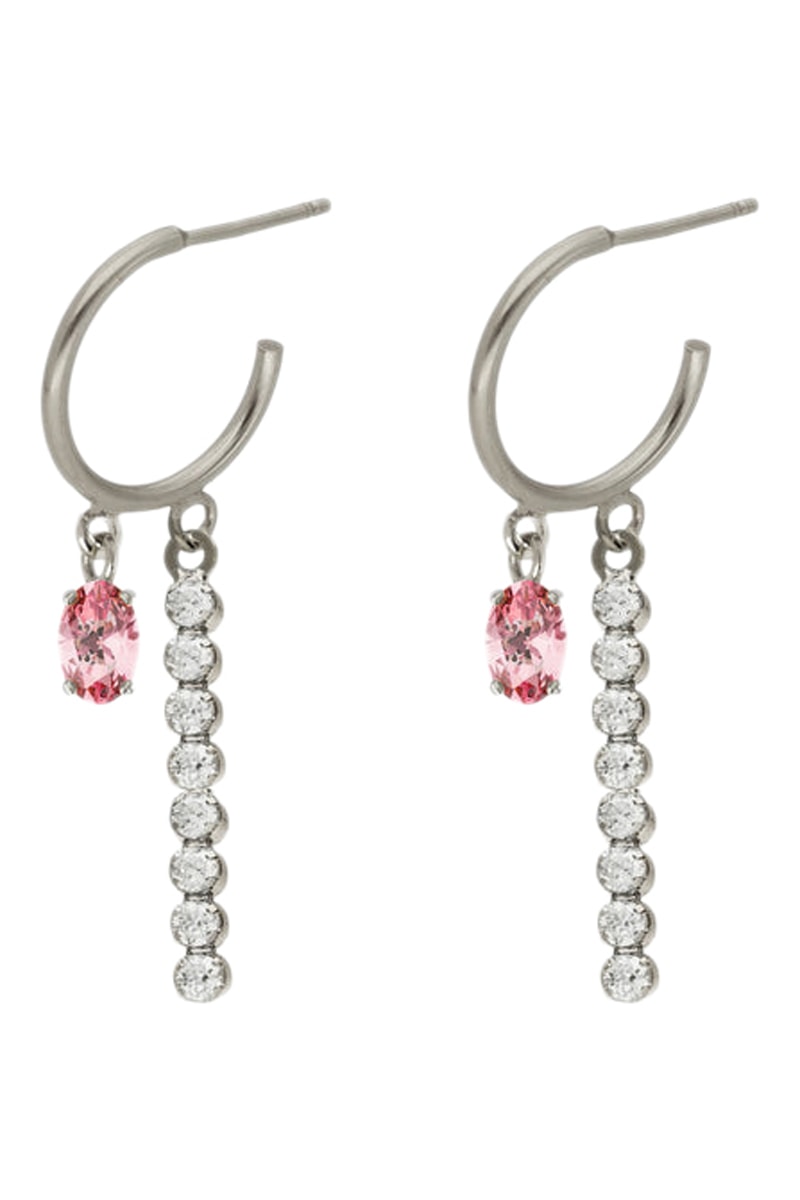 Créoles en argent serties de 9 cristaux.