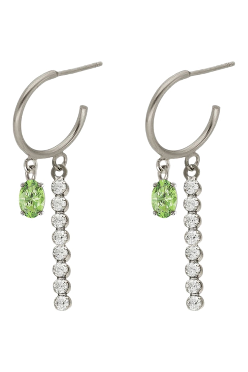 Créoles en argent serties de 9 cristaux.