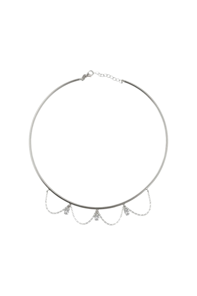 Collier en argent plaqué or jaune serti de 3 cristaux.