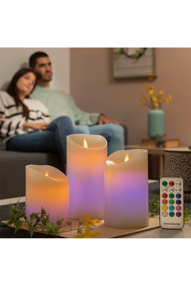 3 bougies LED multicolore à effet flamme avec télécommande.