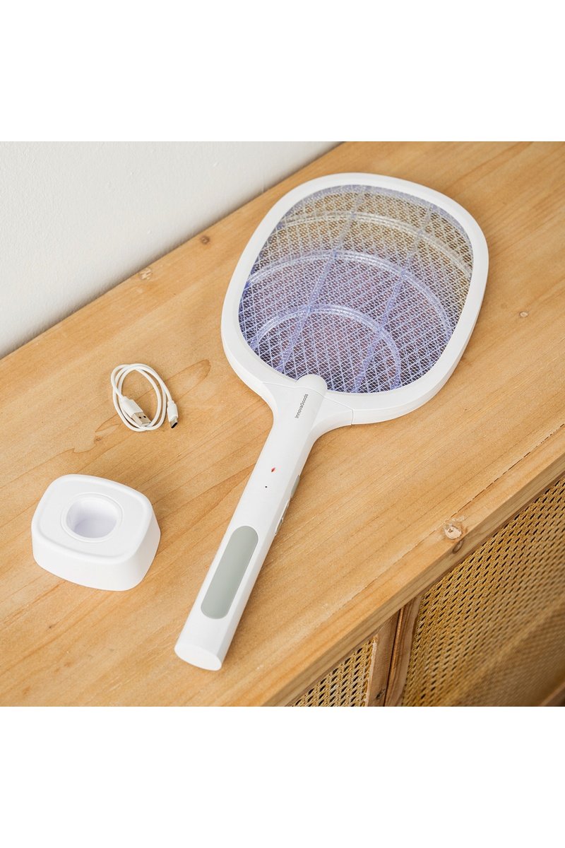 Raquette anti-insectes rechargeable 2-en-1 avec lumière UV.