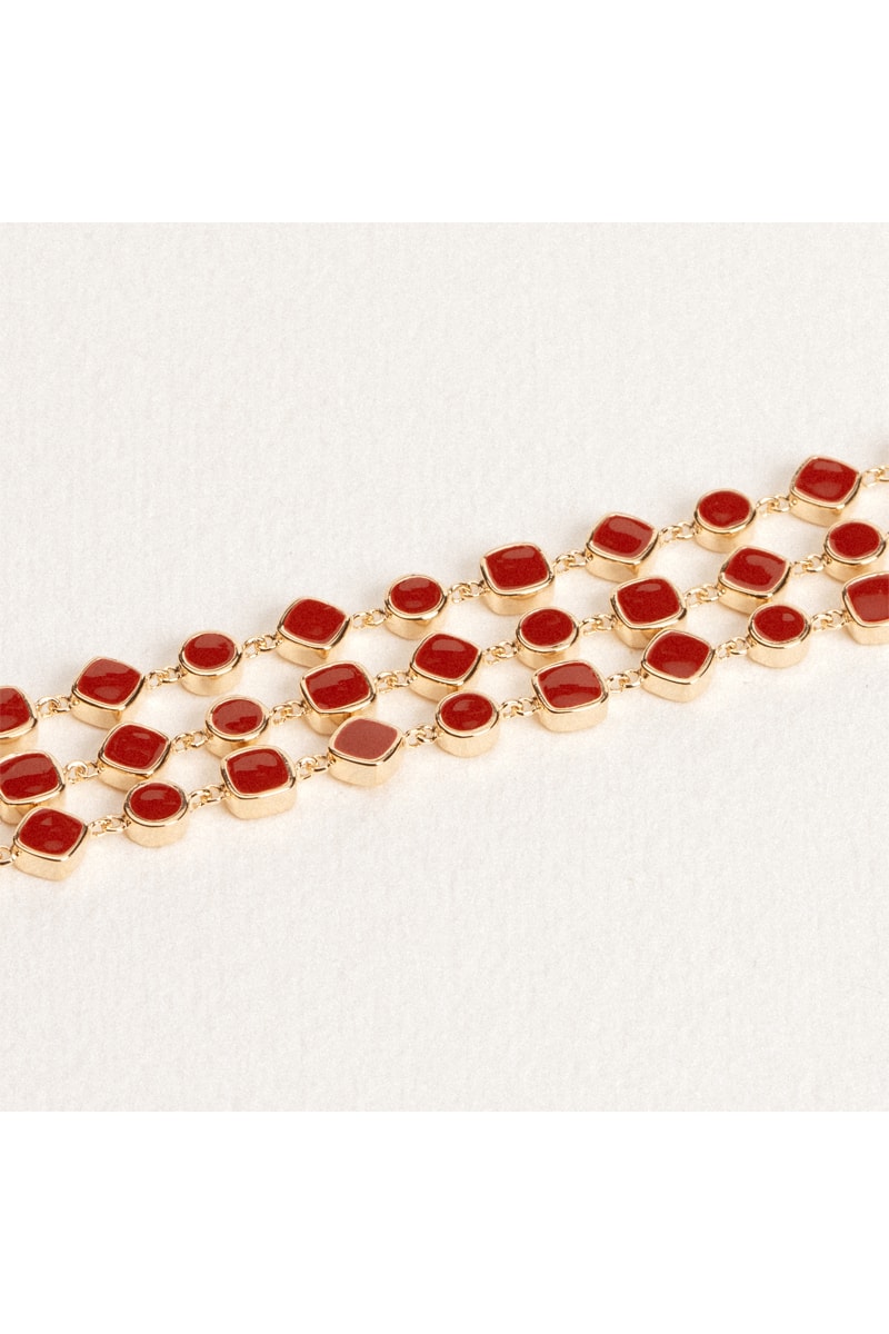 Bracelet multirangs en plaqué or jaune serti de cristaux.