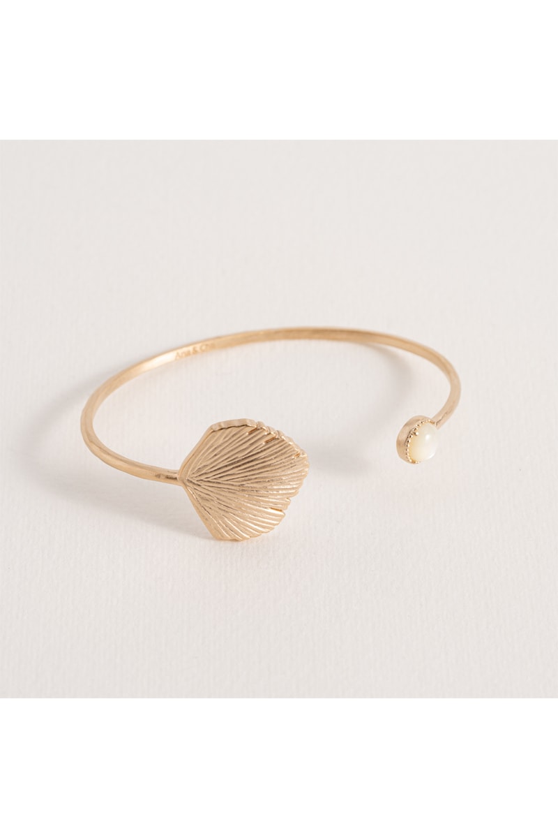 Jonc ouvert en plaqué or jaune serti de nacre.