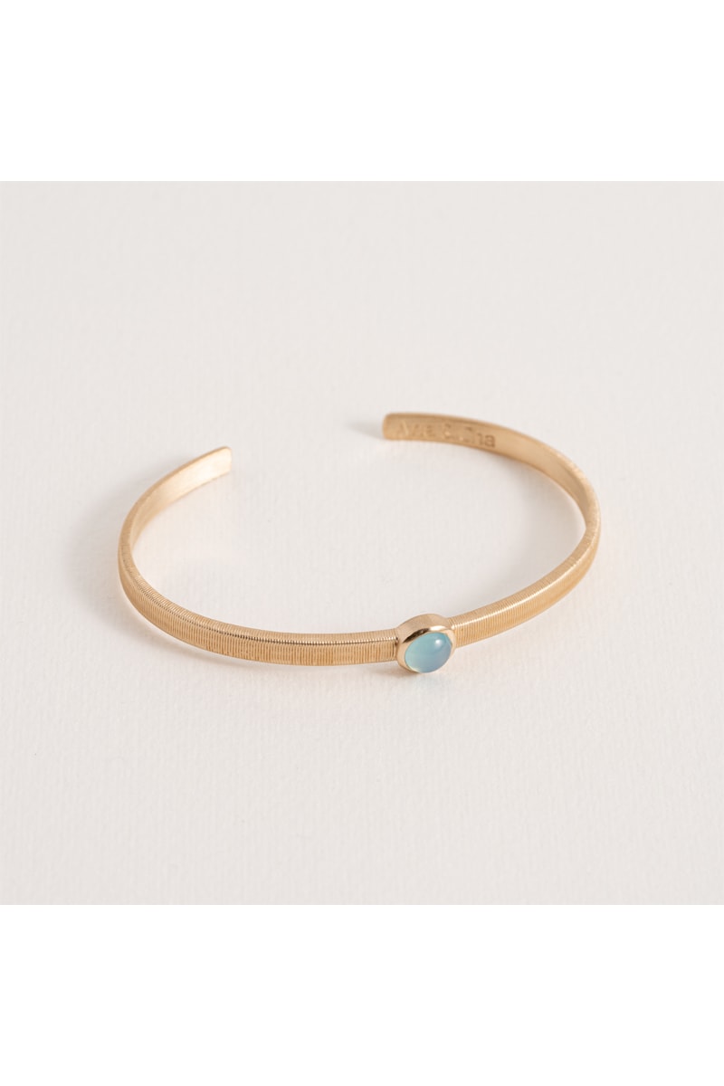 Jonc ouvert en plaqué or jaune serti d’une agate.