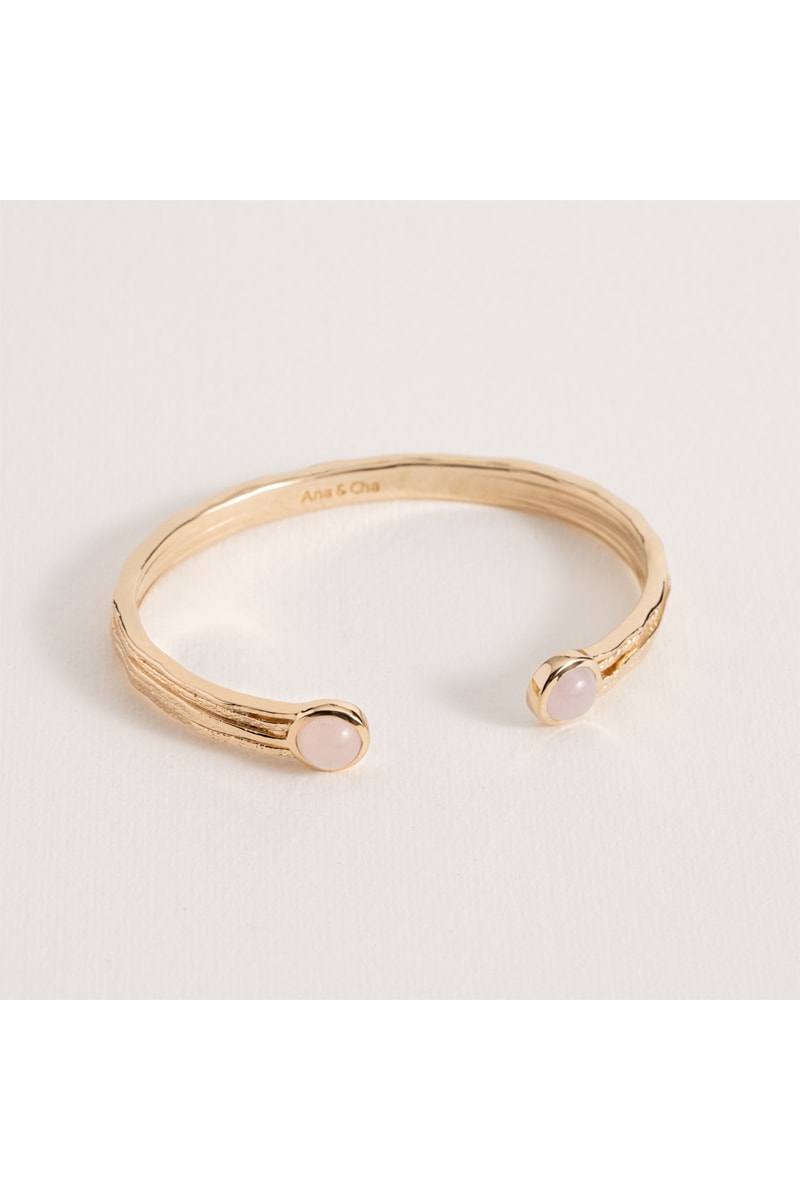 Jonc ouvert en plaqué or jaune serti de 2 quartz.