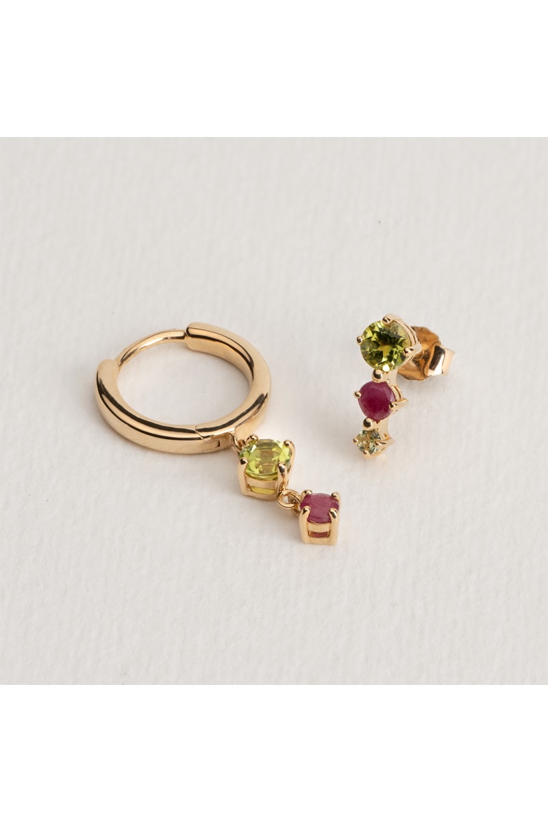 Boucles d'oreilles dépareillées en plaqué or jaune serties de cristaux.