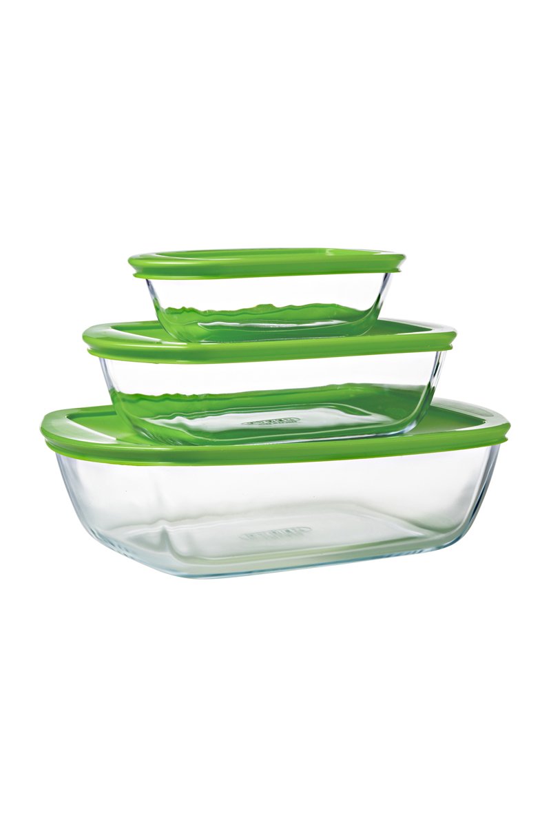 3 plats rectangulaires en verre borosilicate avec couvercle Cook & Store - 17 x 10 - 23 x 15 et 28 x 20 cm