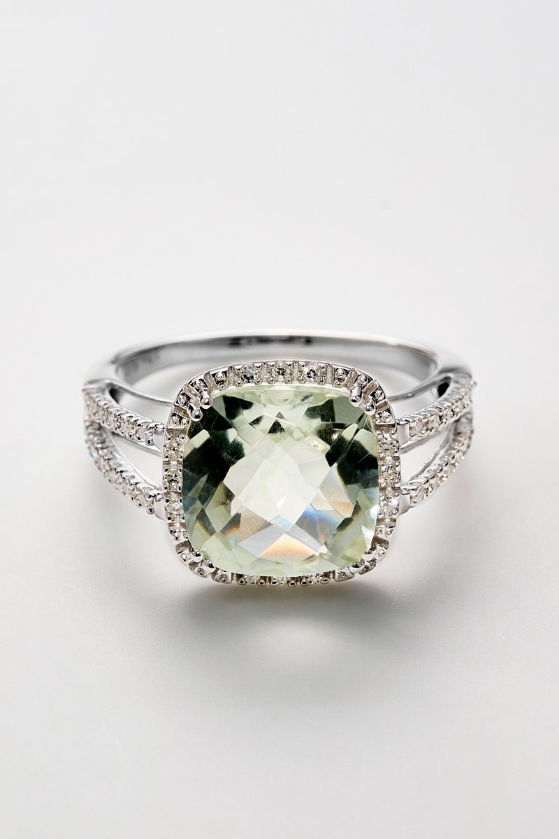 Bague Divine Améthyste Verte - Or blanc, diamants et améthyste