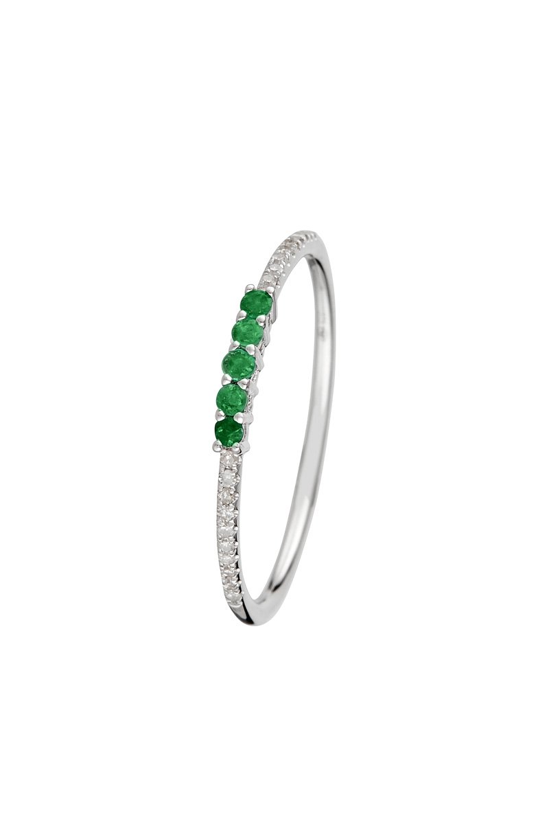 Bague Lisière - Or blanc, diamants et émeraudes