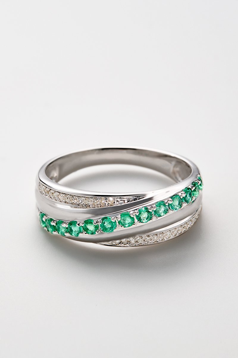 Bague Entrelacs émeraude - Or blanc, diamants et émeraudes