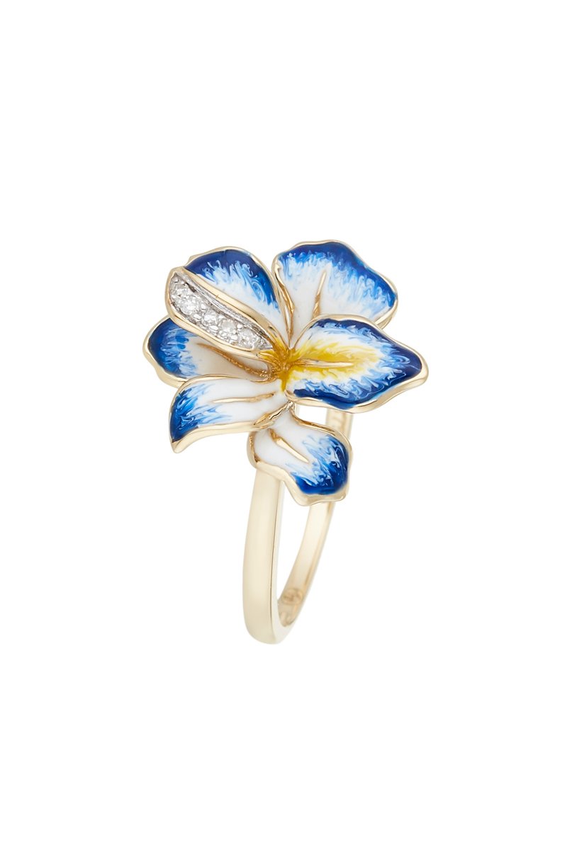Bague en or jaune sertie de 5 diamants et d'émail.