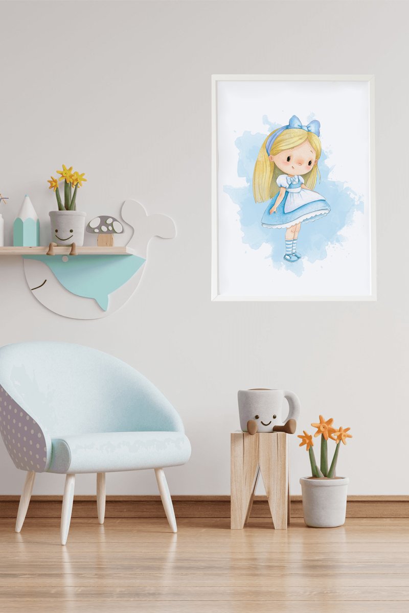 Tableau Alice au Pays des Merveilles - 33 x 43 x 2 cm - Blanc et blanc