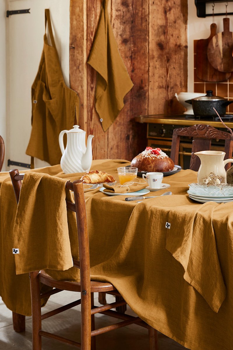 Nappe rectangulaire en lin Solide - Caramel