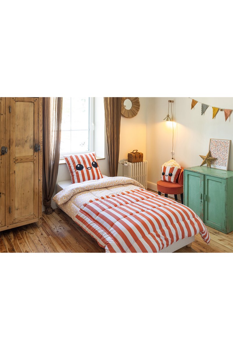Parure de couette en coton Fresh popcorn - Orange et écru