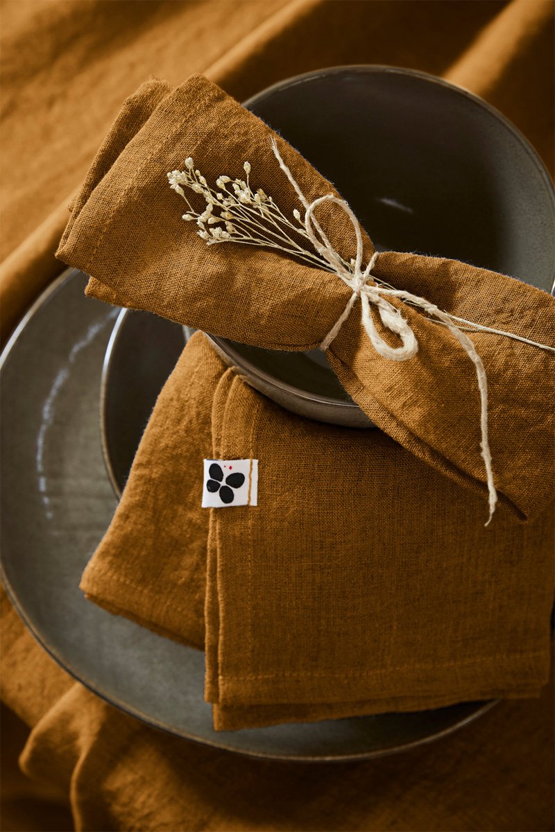 3 serviettes en lin lavé Soline - Caramel - 40 x 40 cm