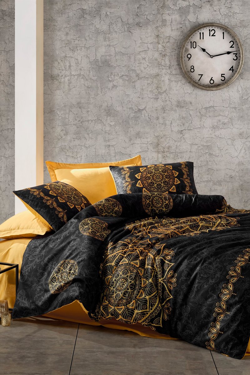 Parure de couette en satin de coton 84 fils/cm² Alvina - Noir et jaune