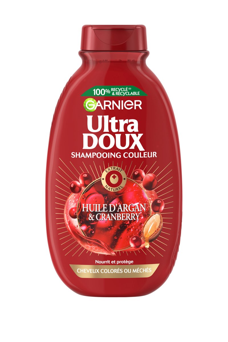 Garnier Ultra Doux associe l'huile d'Argan, réputée pour ses vertus nourrissantes, et la cranberry reconnue pour ses propriétés antioxydantes et protectrices, dans une formule crémeuse qui n'alourdit pas vos cheveux.