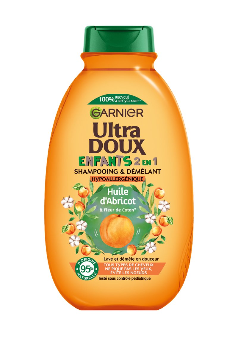 Découvrez notre formule enfants 2-en-1, enrichie en huile d’abricot et fleur de coton, pour tous types de cheveux.