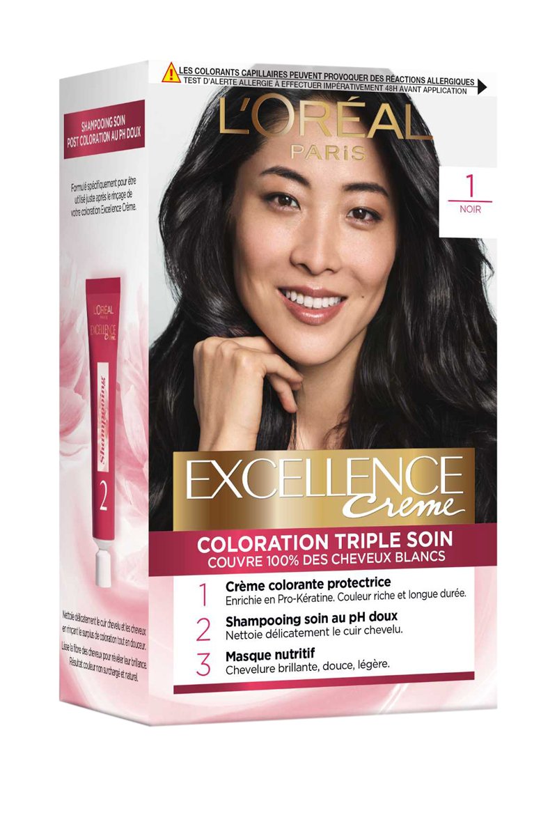 Coloration permanente Triple Soin Excellence Crème - 1 Noir - Cheveux normaux
